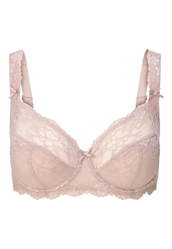 Cup soorten: Full cup bh; Soort bandjes: Normale bandjes; Bh/bikini type: Minimizer; Beugel: Met beugel; Design: Geschulpte zoom; Type sluiting: Haakjes; Motief: Effen; Details: Kant; Extra's: Licht transparant, Verstelbare bandjes, Applicaties