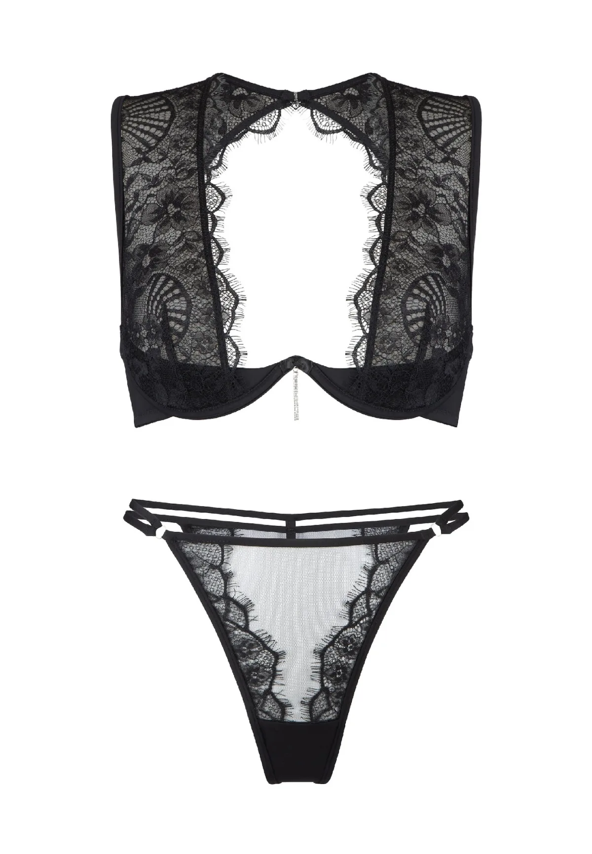 Cup soorten: Demi cup bh; Soort bandjes: Normale bandjes; Bh/bikini type: Bustier; Beugel: Met beugel; Motief: Effen; Details: Kant, Sierstenen; Extra's: Licht transparant, Verstelbare bandjes; Aantal per set: 2-delig