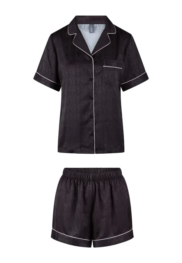 "Gift comfort. Gift luxury. Our Lounge Gift Set." Deze Shortama Set heeft een blouse met korte mouwen en een kort broekje in een mooie satijnen stof. Het bloesje heeft knoopsluitingen en een borstzakje aan de voorzijde. Op het borstzakje staat LD gestikt. Het broekje heeft een elastische tailleband. Feestelijk verpakt.