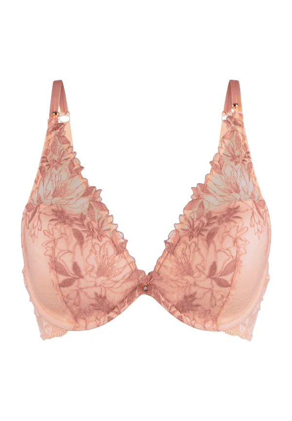Coral Tones.... Een echte frisse serie voor dit seizoen! Deze romantische serie met veel kant mag niet ontbreken in je collectie. Deze geheel kanten triangle bh met beugel beschikt over padding in een mooie coral kleur. De schouderbandjes zijn verstelbaar en afgewerkt met kant.