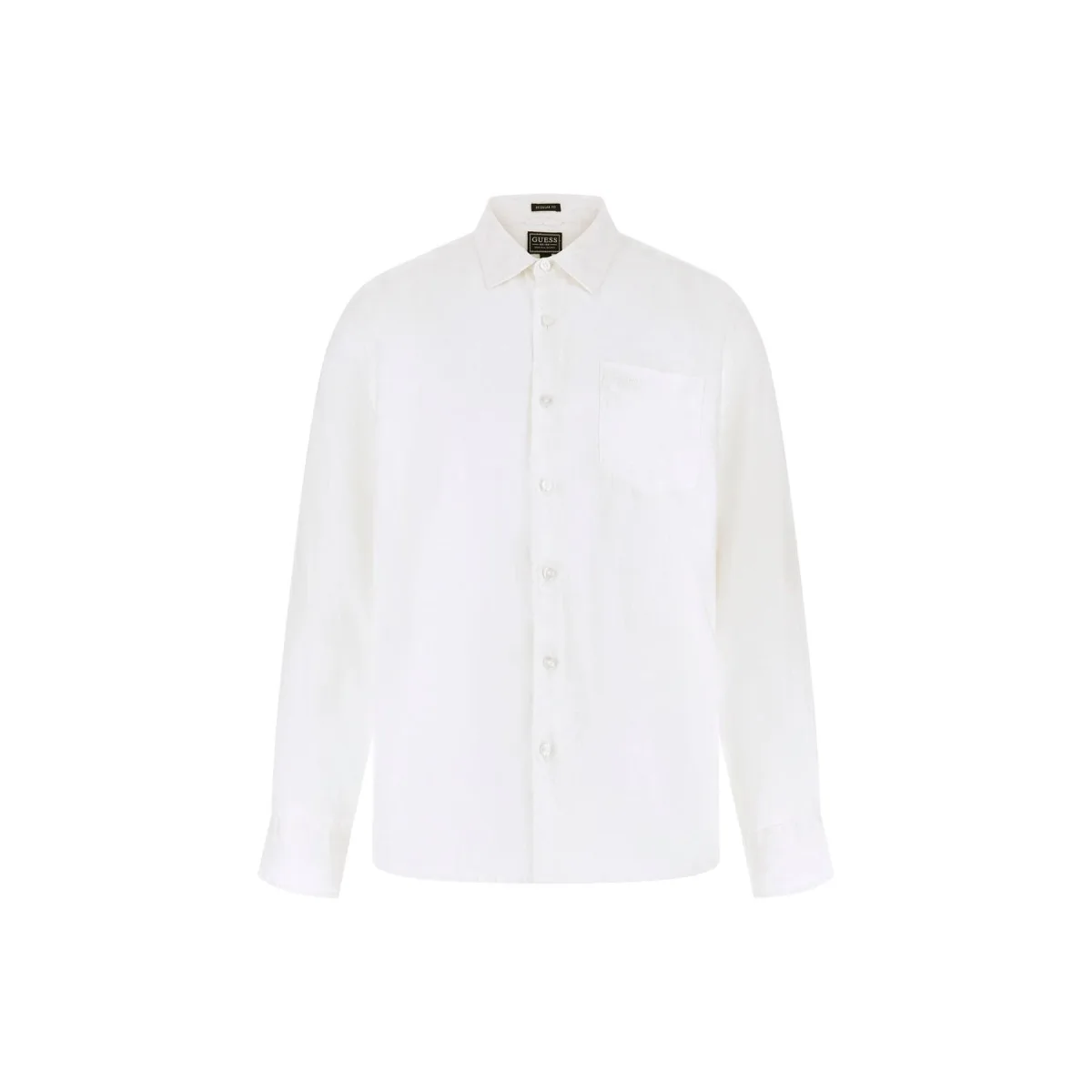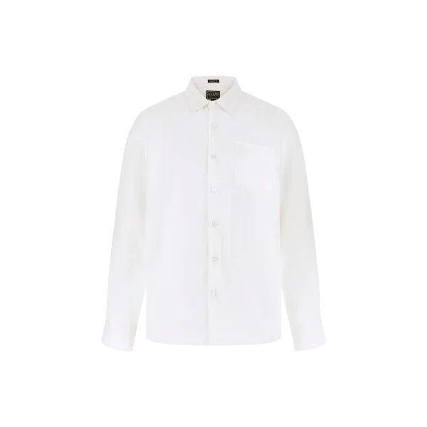 Linnen overhemd met lange mouwen.Classieke shirtkraag.Plat borstzakje met monochroom logo lettering.Achterpaneel.Sluiting met knopen.