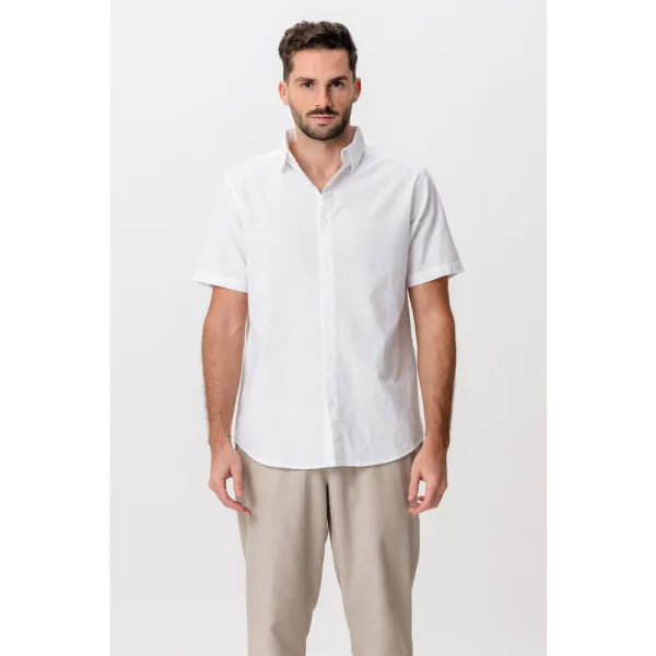 Linnen overhemd met korte mouwen – Wit