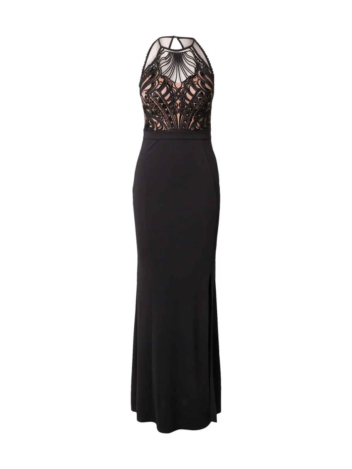 Design: Amerikaanse schouder, Rug rits; Type sluiting: Ritssluiting; Halstype: Ronde hals; Motief: Effen; Soort bandjes: Haltermodel; Details: Cut-outs, Borduursels; Extra's: Op staal naden, Gladde stof; Lengte: Lang/maxi; Snit: Figuur omarmend; Pasvorm: Aansluitende pasvorm; Armlengte: Mouwloos