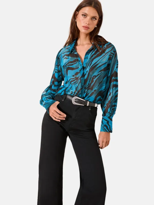 Blouse type: Klassieke blouse; Design: Knop placket, Oversized, Turn-down kraag; Type sluiting: Knoopsluiting; Materiaal: Chiffon; Motief: Camouflage; Kraag: Kentkraag; Details: Plooien; Extra's: All-over patroon, Gladde stof; Pasvorm: Losse pasvorm; Armlengte: Lange mouw; Lengte: Normale lengte