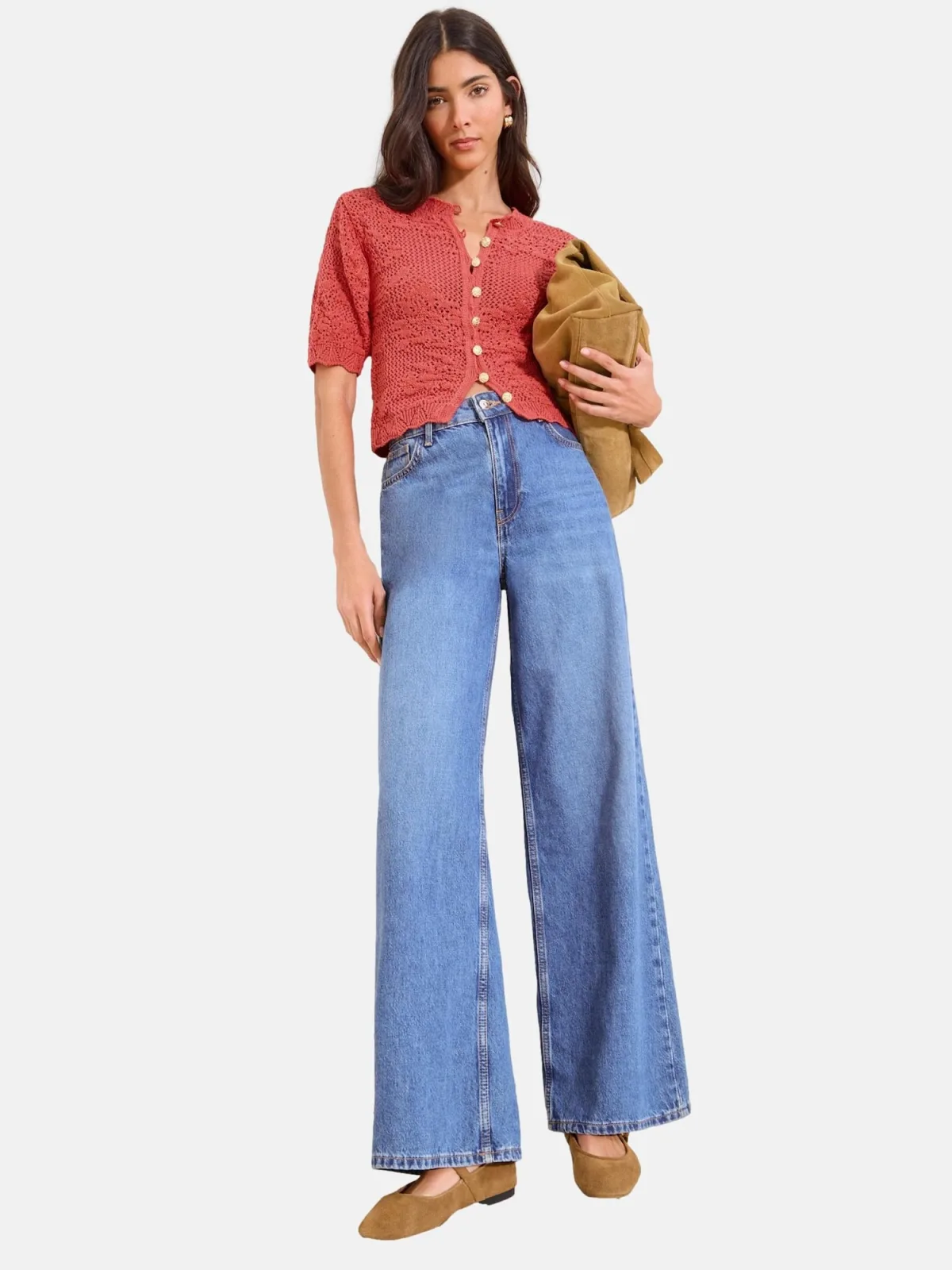 Design: Gevoerde zoom/rand, Pofmouwen; Type sluiting: Knoopsluiting; Materiaal: Knitwear; Halstype: Ronde hals; Motief: Effen; Details: Borduursels; Extra's: Op staal naden; Pasvorm: Normale pasvorm; Armlengte: Halve mouw; Lengte: Korte pasvorm