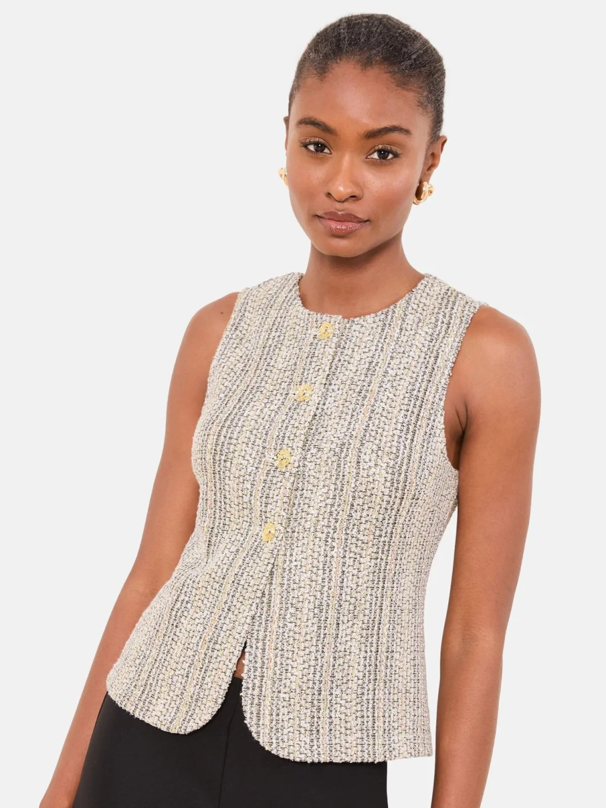Lipsy Gilet goud / donkergrijs / wit Prijzen