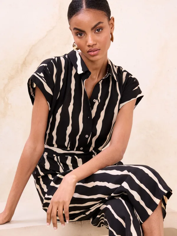 Design: Om te knopen/binden; Type sluiting: Knoopsluiting; Halstype: Overhemdkraag (klassiek); Motief: Gestreept; Details: Gedrapeerd; Extra's: All-over patroon; Lengte: 3/4 lengte; Pasvorm: Normale pasvorm; Armlengte: Kwartmouw