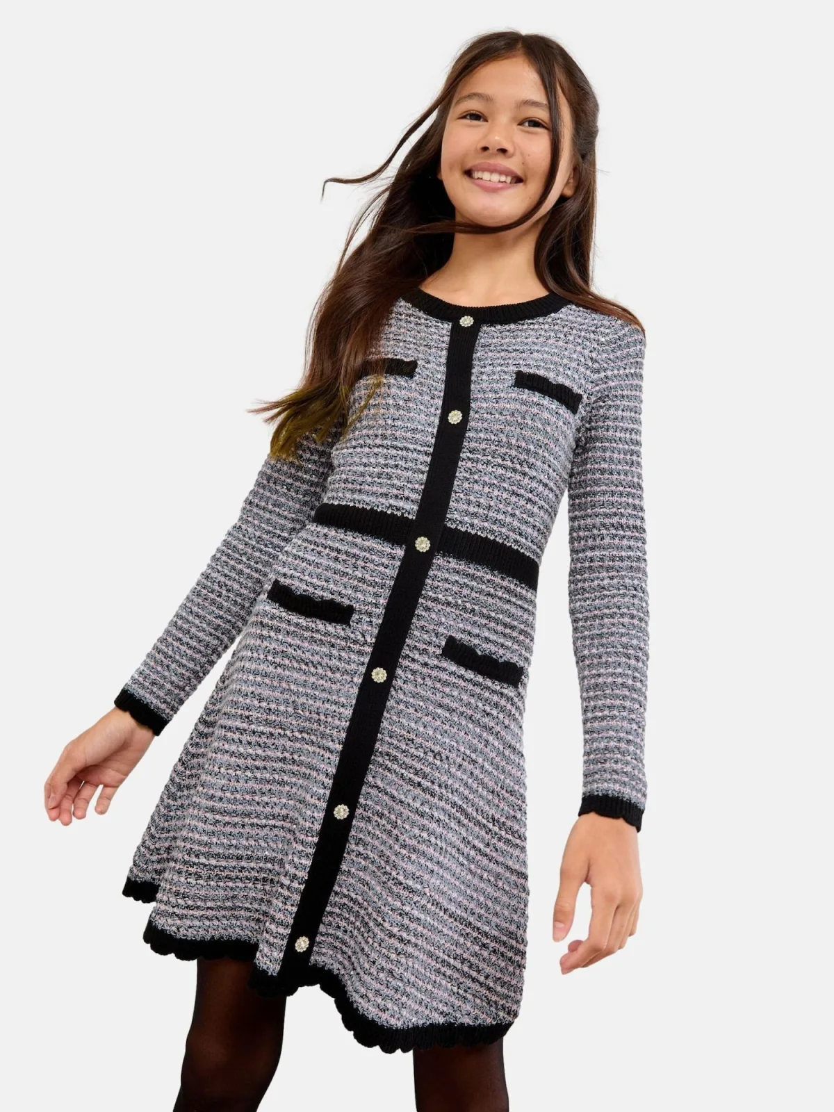 Design: Knop placket, Paspelzak; Type sluiting: Knoopsluiting; Materiaal: Bouclé; Halstype: Ronde hals; Extra's: Fully fashioned; Lengte: Knielengte; Pasvorm: Normale pasvorm; Armlengte: Lange mouw
