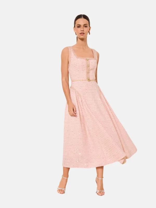 Design: Gevoerde zoom/rand, Rug rits; Type sluiting: Ritssluiting; Materiaal: Bouclé; Halstype: Carréhals; Motief: Mélange; Soort bandjes: Brede bandjes; Details: Pailletten, Plooien; Extra's: Glitterend, Met textuur; Lengte: 3/4 lengte; Snit: Getailleerd; Pasvorm: Normale pasvorm; Armlengte: Mouwloos