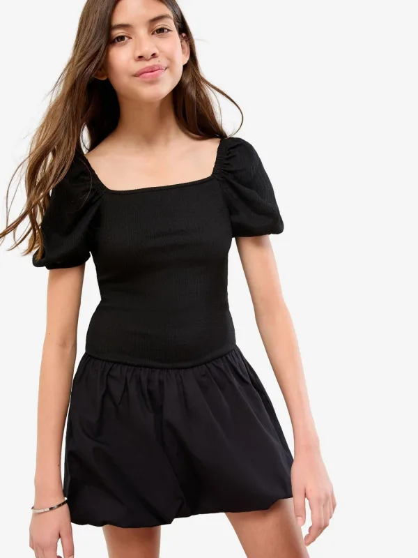 Design: Pofmouwen; Halstype: Carréhals; Motief: Effen; Details: Gedrapeerd; Extra's: Voelt zacht aan; Lengte: Kort/mini; Pasvorm: Normale pasvorm; Armlengte: Kwartmouw