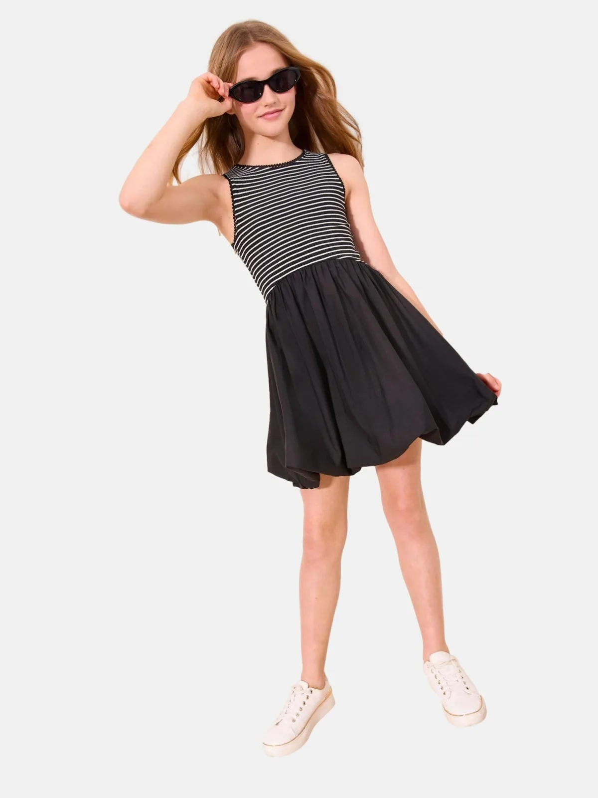 Design: Ingelegde kraag; Halstype: Ronde hals; Motief: Gestreept; Soort bandjes: Brede bandjes; Details: Gedrapeerd; Extra's: Gladde stof; Lengte: Knielengte; Pasvorm: Normale pasvorm; Armlengte: Mouwloos