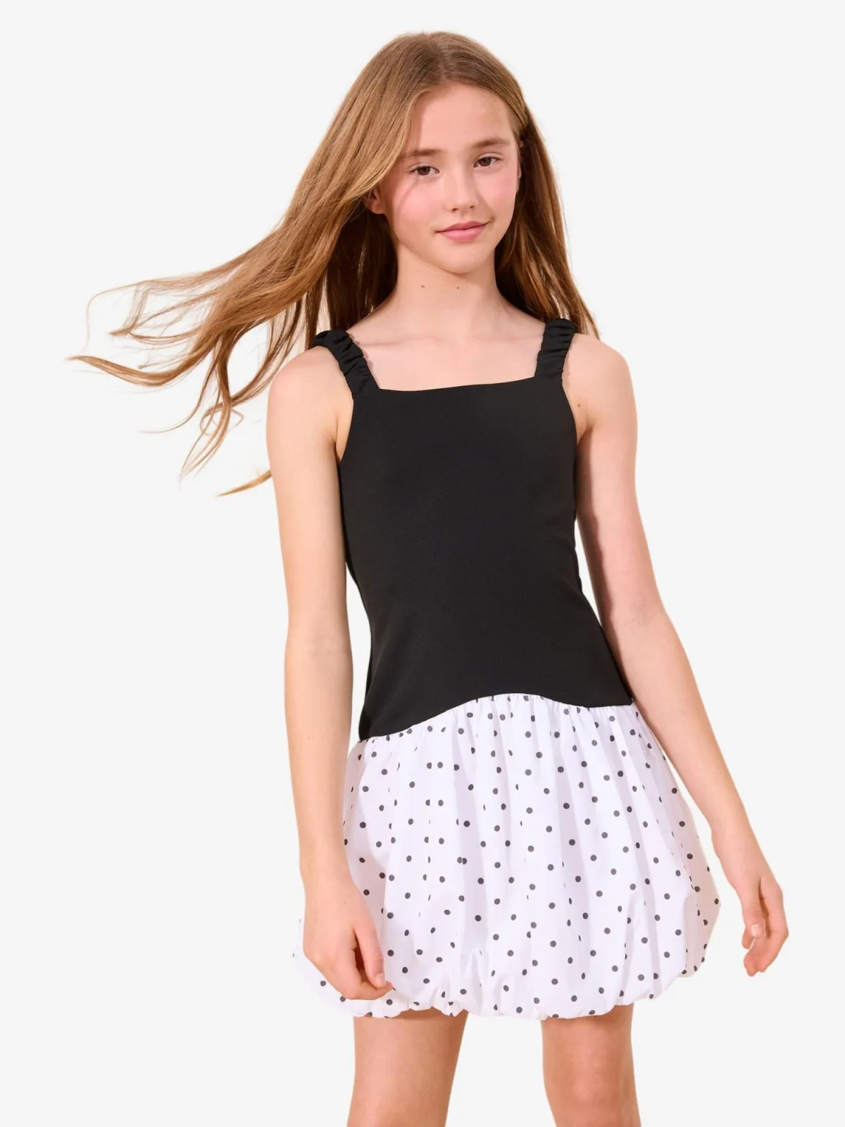 Design: Gevoerde zoom/rand; Type sluiting: Slip; Halstype: Carmen hals; Motief: Gestippeld; Soort bandjes: Brede bandjes; Details: Gedrapeerd; Extra's: All-over patroon, Op staal naden; Lengte: Kort/mini; Pasvorm: Normale pasvorm; Armlengte: Mouwloos