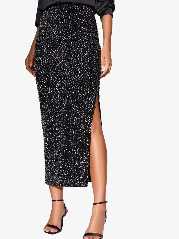 Design: Beenopening; Rokvorm: Kokerrok; Details: Pailletten; Extra's: Applicaties; Lengte: 7/8 lengte; Pasvorm: Slanke pasvorm; Taillehoogte: High waist