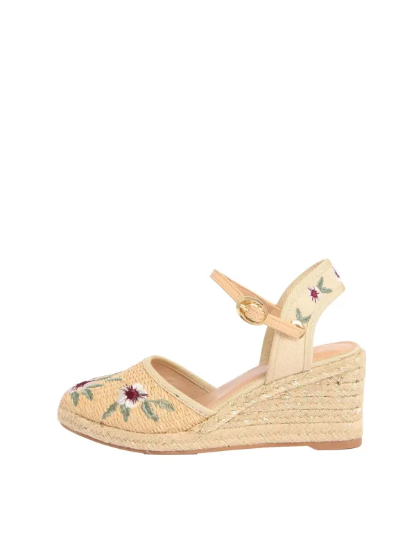 Design: Verstelbare riemen, Hak/zool met raffia-look; Type sluiting: Riemsluiting; Type hak: Sleehak; Motief: Bloemenprint; Plateau: Met plateau; Materiaal: Textiel; Schoenneus: Ronde neus; Extra's: Gestructureerd oppervlak; Hakhoogte: Middelhoge hak (3-7 cm)