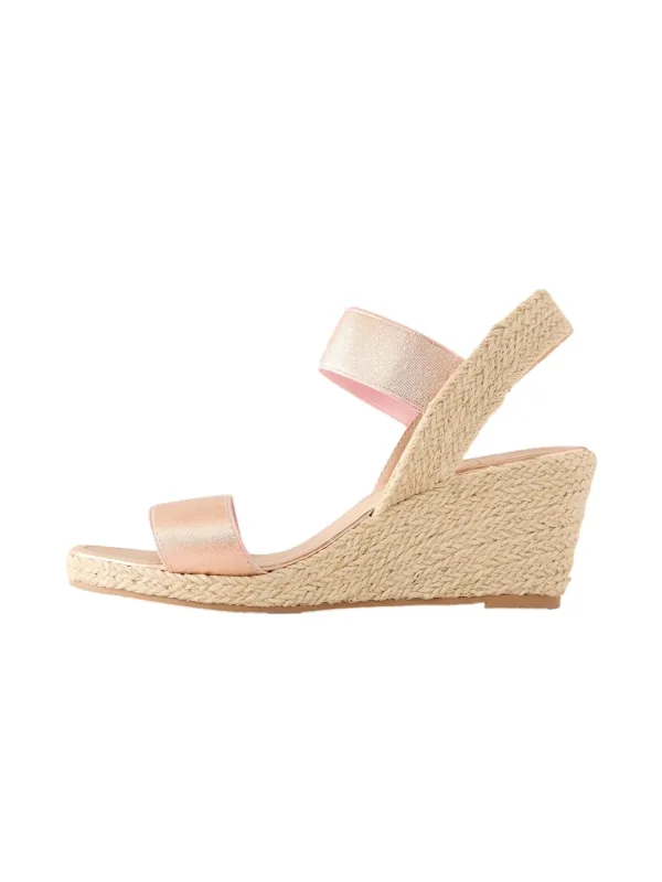 Design: Elastische inzetstukken, Hak/zool met raffia-look; Type sluiting: Elastische band; Type hak: Sleehak; Motief: Effen; Materiaal: Textiel; Schoenneus: Open toe; Extra's: Glinsterend, Flexibele zool; Hakhoogte: Middelhoge hak (3-7 cm)