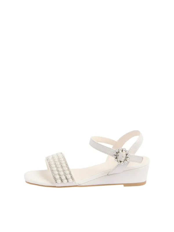 Design: Pumps met enkelbandje; Type sluiting: Riemsluiting; Type hak: Sleehak; Motief: Effen; Materiaal: Textiel; Schoenneus: Open toe; Extra's: Met kristalparels/glazen parels; Hakhoogte: Middelhoge hak (3-7 cm)