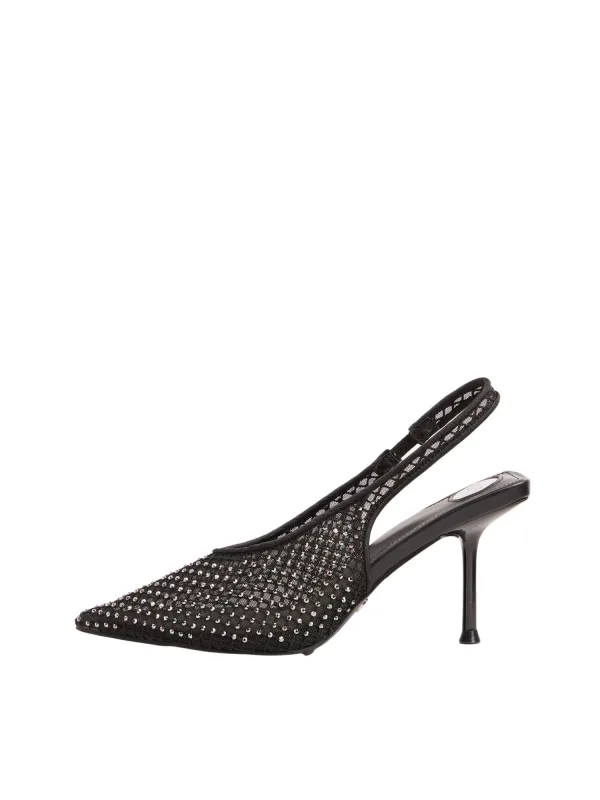 Design: Ingelegde zoom/rand; Type sluiting: Elastische band; Type hak: Stiletto; Materiaal: Mesh; Schoenneus: Spitse neus; Extra's: Met halfedelstenen; Hakhoogte: Middelhoge hak (3-7 cm)