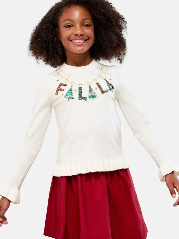 Design: Geribbelde kraag; Materiaal: Knitwear; Halstype: Ronde hals; Motief: Tekst print; Details: Pailletten, Ruches, Borduursels; Extra's: Met textuur, Kerstdesign; Pasvorm: Normale pasvorm; Armlengte: Lange mouw; Lengte: Normale lengte