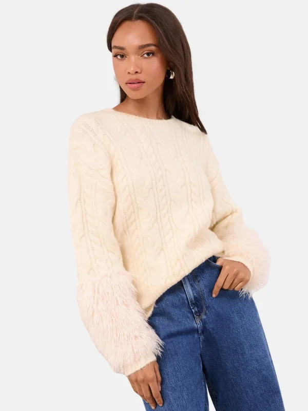 Design: Geribbelde kraag, Geribd ceintuurtje, Overcut schouder, Vlecht brei; Materiaal: Knitwear; Halstype: Ronde hals; Motief: Effen; Extra's: Fully fashioned, Met faux bont trim, Met textuur; Pasvorm: Normale pasvorm; Armlengte: Lange mouw; Lengte: Normale lengte