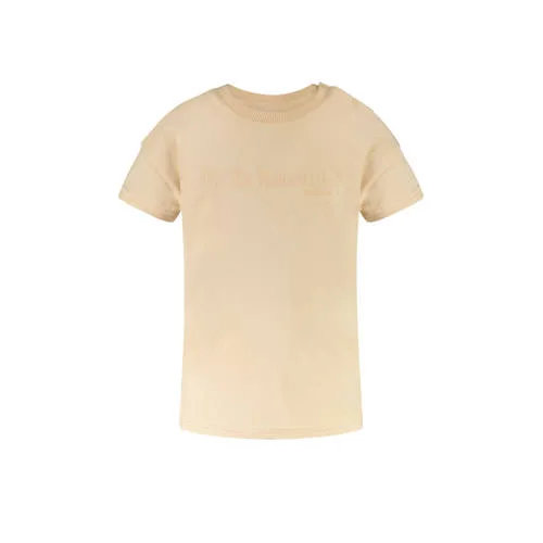 Dit T-shirt van Little Cars heeft een ronde hals en korte mouwen. Het is gemaakt van katoen met elastaan. Perfect voor meisjes die houden van comfort en stijl in een beige kleur.