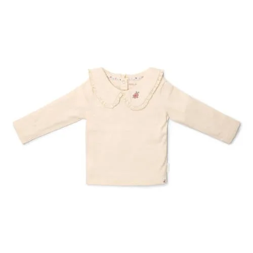 Deze longsleeve van Little Dutch heeft rechte mouwen en een Peter Pan-kraag. Dit kledingstuk is gemaakt van katoen en heeft ruches bij de hals. Je draagt deze makkelijk de hele dag.