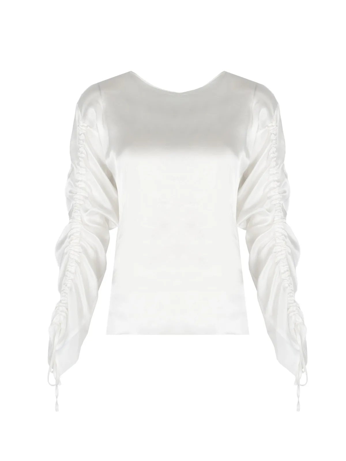 Dit model wordt gekenmerkt door een eenvoudige snit die perfect werkt in zowel de alledaagse als de meer formele styling en comfort en bewegingsvrijheid biedt. De ronde halslijn accentueert de hals zachtjes, voegt elegantie en verfijning toe en blijft een universele keuze die past bij verschillende accessoires en sieraden. Met lange mouwen die ideaal zijn op koelere dagen, warmte en comfort bieden en klasse toevoegen aan elke combinatie. Decoratieve plooien langs de mouwen geven het geheel een uniek karakter en brengen elementen van finesse en modieuze look die de aandacht trekken. Bij de hals onderscheidt een merkdetail subtiel maar duidelijk het merk en benadrukt de exclusiviteit en hoge kwaliteit van het product. Gemaakt van hoogwaardige stof met een toevoeging van zijde, wat niet alleen buitengewone zachtheid en fijnheid garandeert, maar ook duurzaamheid en een elegante uitstraling voor een lange tijd. Gemaakt in Italië, wat synoniem staat voor nauwkeurig vakmanschap en aandacht voor detail, voldoet het product aan de hoogste kwaliteitsnormen.