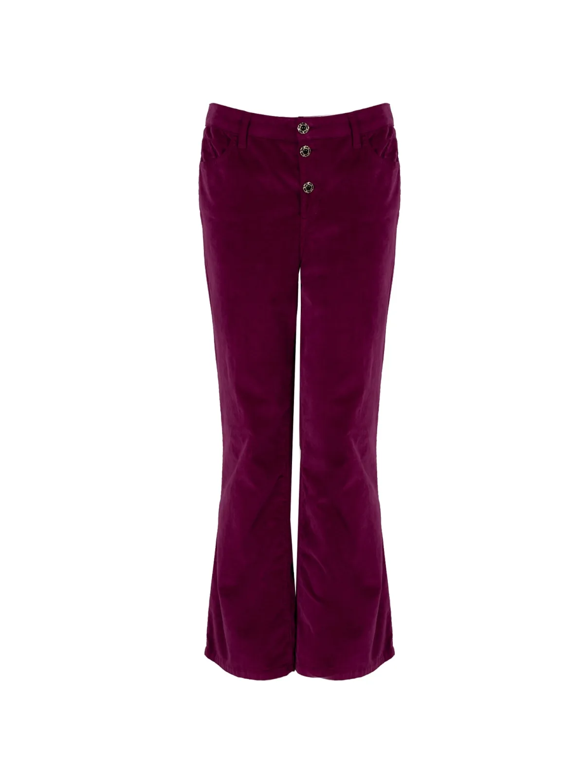 Getailleerde snit die het figuur perfect benadrukt en de hele dag comfort biedt, ongeacht de gelegenheid. Gesloten met sierknopen die elegantie en een uniek karakter toevoegen, waardoor deze broek zich onderscheidt van andere modellen. Licht uitlopende pijpen die zorgen voor een modieuze en stijlvolle look, ideaal voor zowel elegante als casual outfits. Gemiddelde stijging die comfort biedt en een perfecte pasvorm die de natuurlijke lichaamsvormen benadrukt zonder een strak gevoel te geven. Drie zakken aan de voorkant en twee aan de achterkant bieden praktische oplossingen voor het opbergen van kleine spullen met behoud van een esthetische look. Op de achterzak is een bedrijfsdetail aangebracht dat prestige toevoegt en getuigt van een hoogwaardige afwerking en dat het merk benadrukt. Gemaakt van hoogwaardige stof die duurzaam is, prettig aanvoelt en gemakkelijk schoon te maken is, wat een lange levensduur en een onberispelijk uiterlijk garandeert.