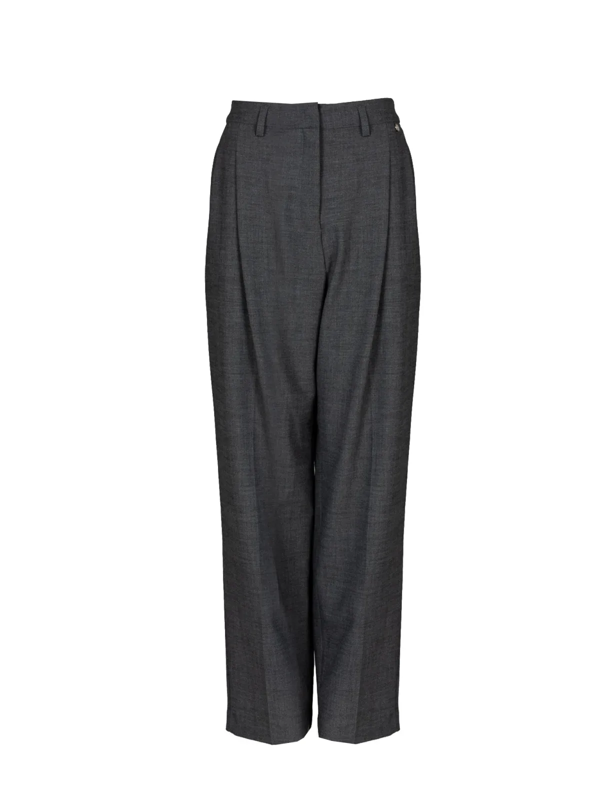 Losse pasvorm die comfort en bewegingsvrijheid biedt, perfect voor zowel alledaagse als formelere gelegenheden. Kan worden vastgemaakt met een rits en haken, wat comfort in gebruik garandeert en een stevige pasvorm gedurende de hele dag, ongeacht de activiteit. Licht taps toelopende pijpen voegen elegantie en een modern karakter toe, waardoor het figuur slanker en aantrekkelijker lijkt. De hoge taille geeft niet alleen vorm aan de taille, maar voegt ook klasse toe en laat de broek er geweldig uitzien met verschillende soorten blouses en shirts. Aan de zijkanten zitten zakken die een praktische toevoeging zijn en waarin je kleine spullen zoals sleutels of een mobiele telefoon kunt opbergen zonder dat je een tas hoeft mee te nemen. Op de linkerheup zit een bedrijfsdetail dat subtiel het merkkarakter van het product benadrukt en het uniek en prestigieus maakt. Gemaakt van hoogwaardige stof die niet alleen duurzaam en bestand tegen beschadiging is, maar ook aangenaam aanvoelt en voor langdurig comfort zorgt.