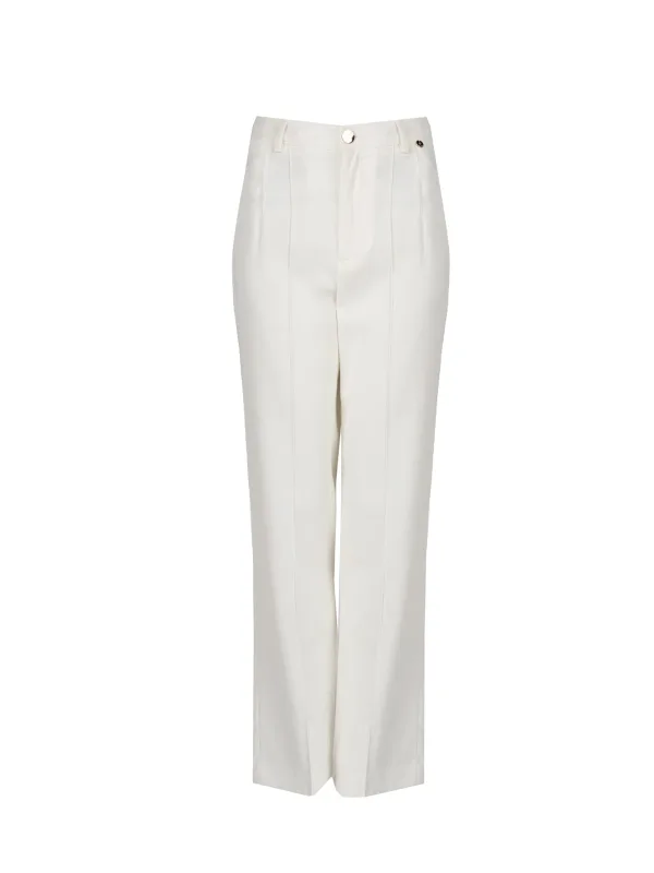 Eenvoudige snit die het figuur benadrukt en een elegante look biedt, perfect voor zowel alledaagse als formelere gelegenheden. Met een ritssluiting en knoop met logo, wat de broek een uniek karakter geeft en comfort biedt en de zekerheid dat de broek de hele dag goed blijft zitten. De licht taps toelopende pijpen geven een moderne look en zorgen ervoor dat de broek perfect gecombineerd kan worden met verschillende soorten schoenen, van elegante loafers tot sportieve sportschoenen. De hoge taille zorgt voor comfort terwijl de taille benadrukt wordt en harmonie toevoegt aan het figuur. Een merkdetail in de taille benadrukt discreet het merk en geeft de broek exclusiviteit en een uniek karakter. Gemaakt van hoogwaardige stof die zorgt voor duurzaamheid, comfort en een elegante uitstraling zodat de broek lang gedragen kan worden.