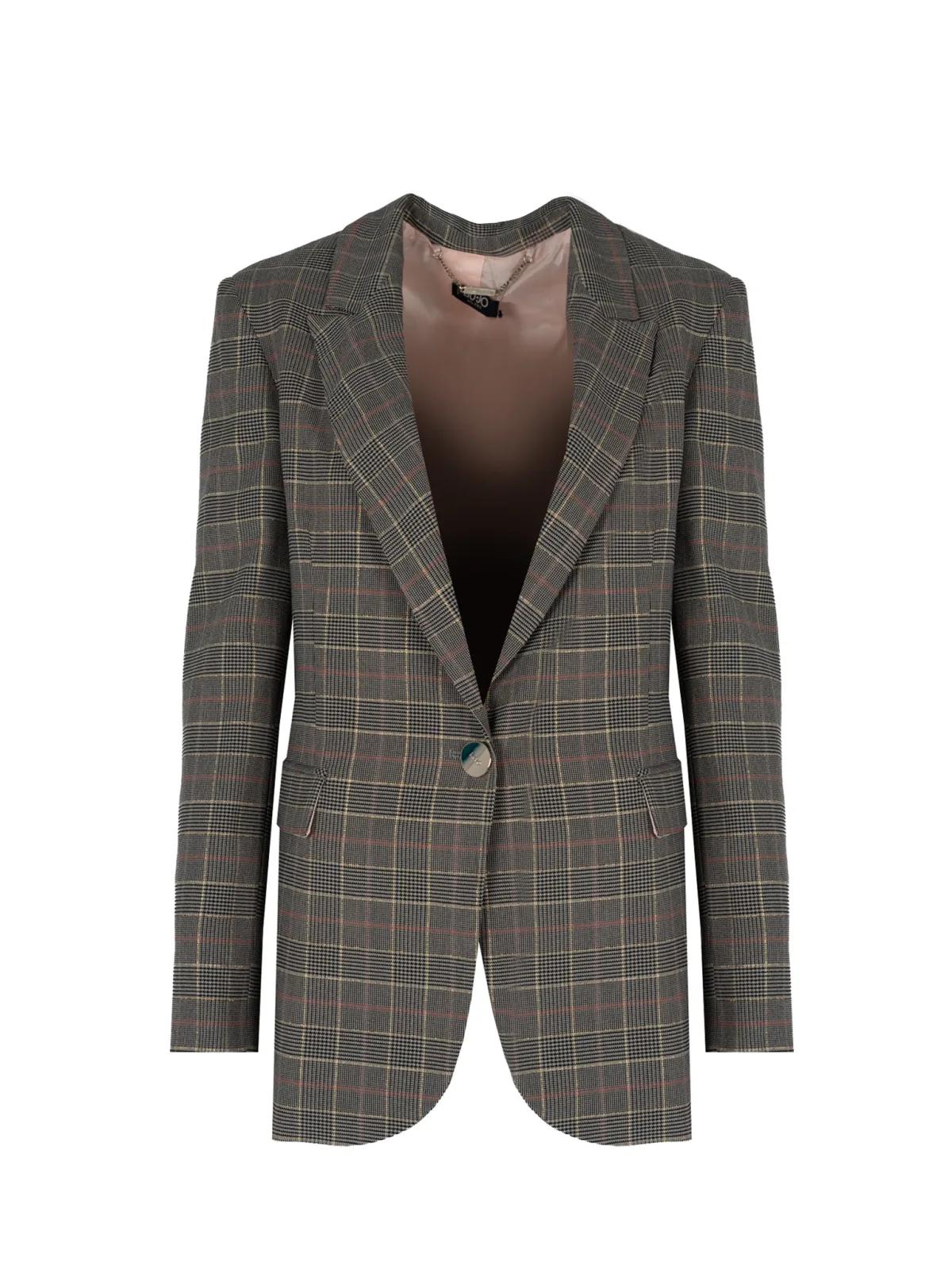 Deze getailleerde pasvorm zorgt ervoor dat onze blazer zeer veelzijdig en gemakkelijk te stylen is, ideaal voor zowel formele gelegenheden als alledaagse kleding, en voegt een elegante touch toe aan elke outfit. De enkellaagse constructie geeft de blazer een klassieke look die nooit uit de mode raakt, en biedt een nette en elegante uitstraling die perfect gecombineerd kan worden met verschillende stylingopties. De blazer wordt gesloten met een sierknoop en benadrukt niet alleen het merkkarakter, maar voegt ook een subtiel, luxueus accent toe dat de aandacht trekt en aandacht voor detail toont. De blazer is gemaakt van hoogwaardige stof met een wolgehalte en garandeert duurzaamheid en comfort met behoud van een elegante look na verloop van tijd, waardoor het een investering voor de lange termijn is. De blazer is gemaakt in Italië en weerspiegelt de uitmuntendheid van het Italiaanse vakmanschap door een combinatie van traditie, precisie en afwerking van de hoogste kwaliteit, waardoor het een bijzonder kledingstuk is.