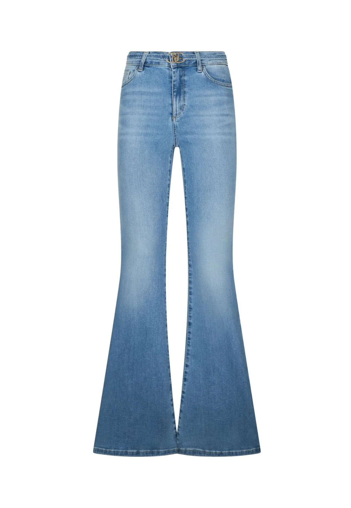 Design: 5-pocket-style, Paspelzak; Type sluiting: Ritssluiting; Materiaal: Denim; Motief: Kleurverloop; Extra's: Riemlussen; Wassing: Light washed; Lengte: Lang/maxi; Pasvorm: Flared; Taillehoogte: High waist