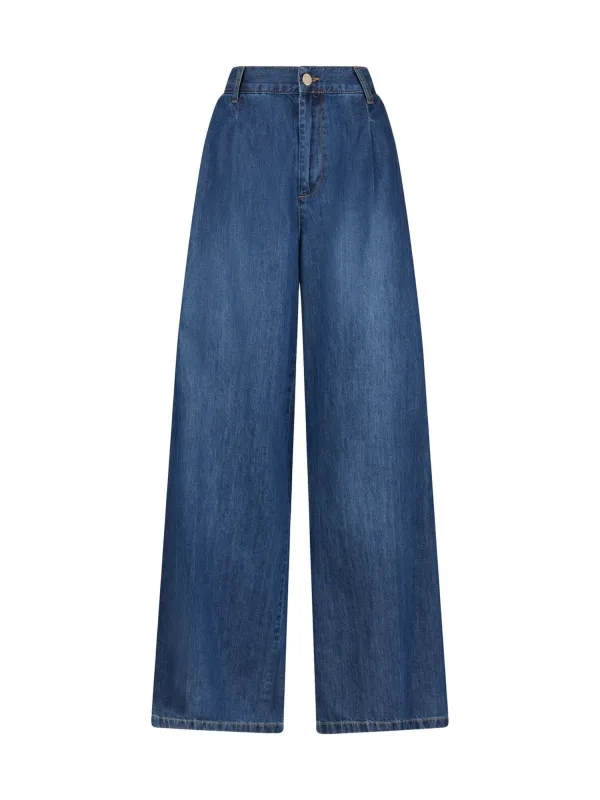 Design: 5-pocket-style, Paspelzak; Type sluiting: Ritssluiting; Materiaal: Denim; Motief: Effen; Wassing: Blauw denim; Lengte: Lang/maxi; Pasvorm: Loosefit; Taillehoogte: High waist