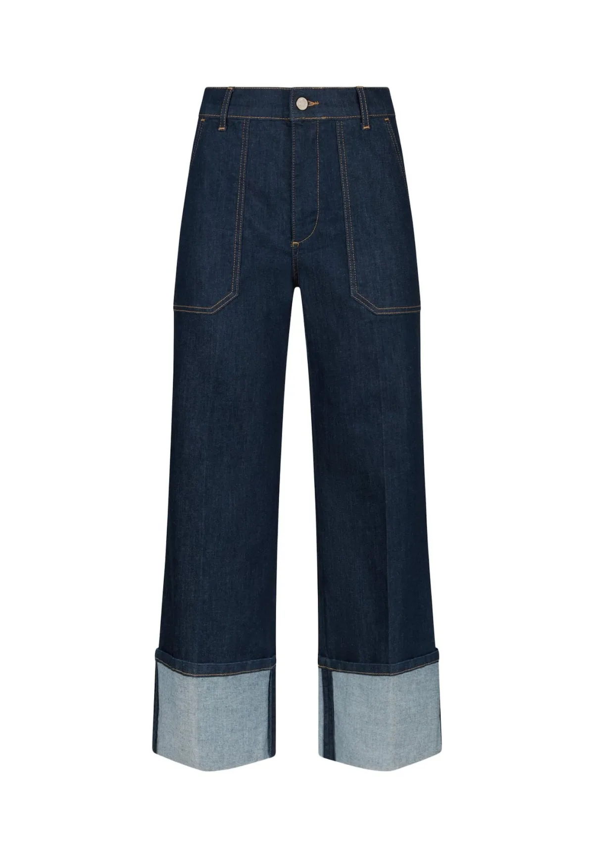 Design: 5-pocket-style; Type sluiting: Ritssluiting; Materiaal: Denim; Motief: Effen; Extra's: Riemlussen; Wassing: Blauw denim; Lengte: Lang/maxi; Pasvorm: Flared; Taillehoogte: High waist