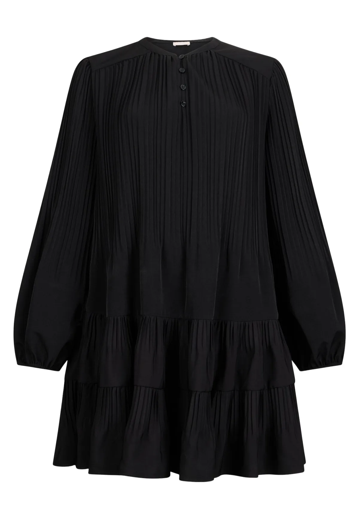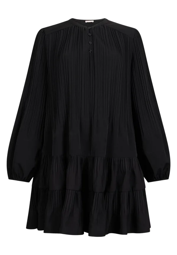 Design: Flare, Elastische taille/zoom; Type sluiting: Knoopsluiting; Materiaal: Crêpe; Halstype: Henley hals; Motief: Effen; Details: Volant, Gedrapeerd, Plissé; Extra's: Gladde stof, Lichte stof; Lengte: Kort/mini; Snit: Uitlopend; Pasvorm: Losse pasvorm; Armlengte: Lange mouw