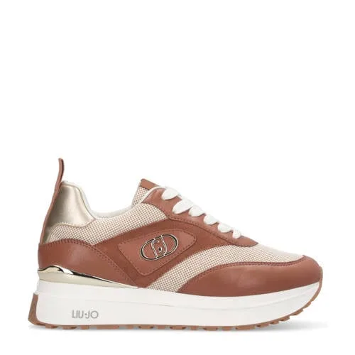 Liu Jo Maxi Wonder 97 BIS leren sneakers bruin/beige