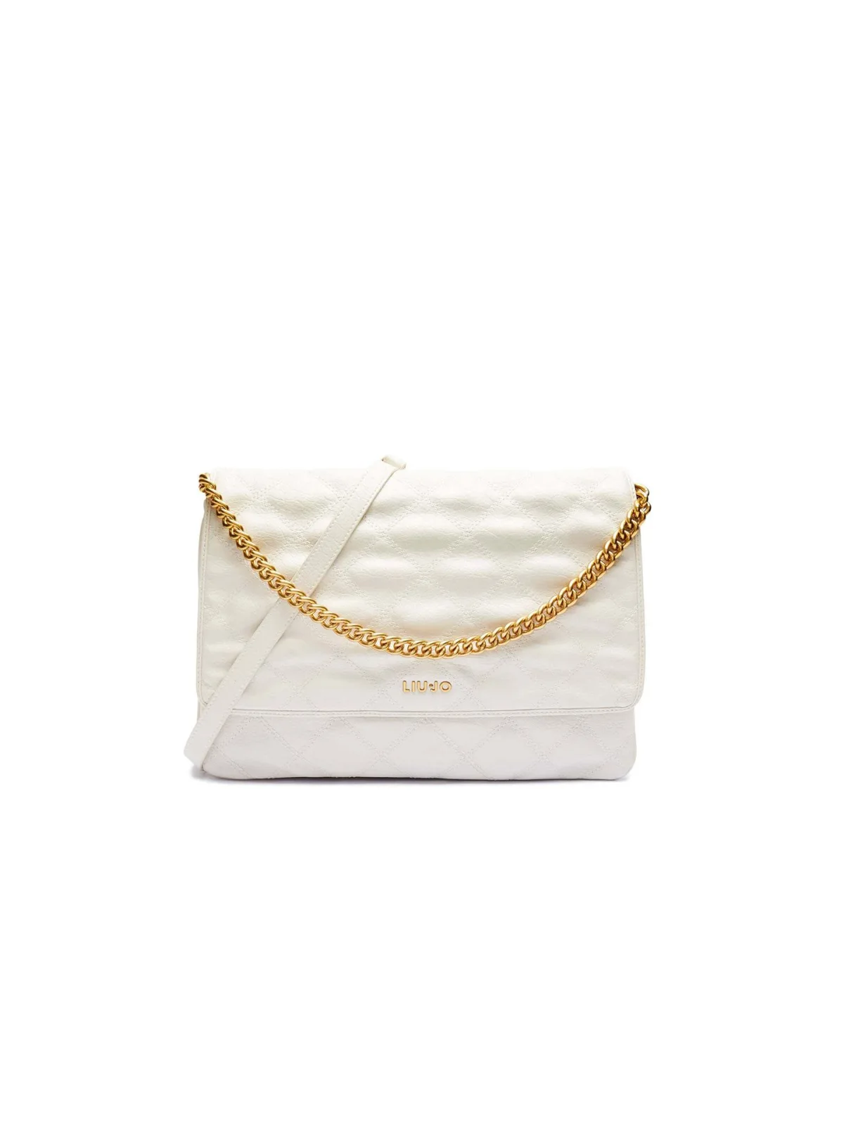 Cream Liu Jo Gequilted Schoudertas, Ruim Model Met Een Slank Nep leren Ontwerp Met Geometrisch Patroon Stiksel. Handvat Met Ketting, Verstelbare Afneembare Schouderband En Maxi Flap Sluiting. Gefokt Interior Compleet Met Wandvak. Afmetingen - 36x26x5 cm