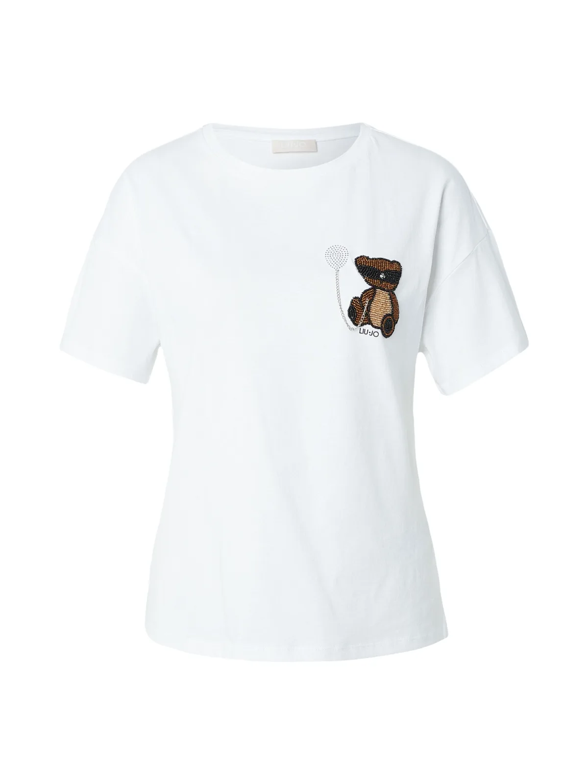 Dames-T-shirt van 'Liu Jo White';puur katoen;regular fit;met siersteentjes;Logo-print;ronde hals;ruglengte bij maat S: 59 cm