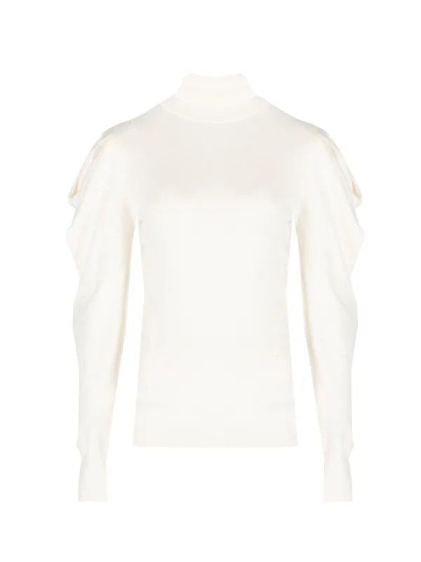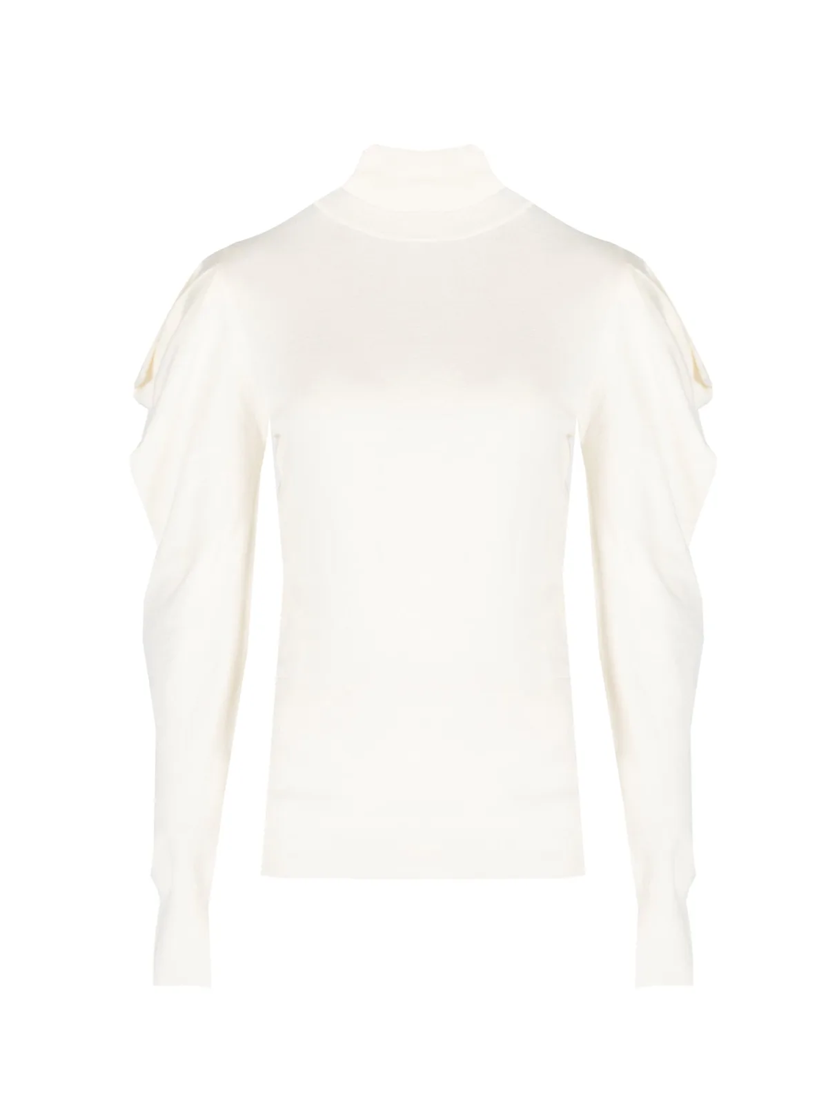 Het getailleerde model benadrukt het figuur perfect en biedt de hele dag door comfort, zodat je je in elke situatie zelfverzekerd kunt voelen. De col voegt niet alleen elegantie toe, maar beschermt ook tegen de kou, waardoor dit kledingstuk ideaal is voor koelere dagen. De mouwen en zoom met manchetten zorgen ervoor dat de trui perfect aansluit op het lichaam, zodat het materiaal niet omhoog komt en je er altijd netjes uitziet. De versierde mouwen geven de trui een uniek karakter en stijl, zodat je je kunt onderscheiden van de massa en een speciaal tintje aan je look kunt geven. Deze trui is gemaakt van hoogwaardige stof en voelt niet alleen zacht en aangenaam aan, maar is ook duurzaam, zodat je er vele seizoenen plezier van zult hebben.