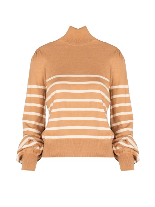 Deze nauwsluitende trui accentueert het silhouet en biedt maximaal comfort dankzij de elastische materialen die perfect aansluiten op het lichaam, de bewegingen niet beperken en elegantie toevoegen aan elke stijl. De col voegt niet alleen chic toe, maar biedt ook warmte op koelere dagen en beschermt de nek tegen wind en kou; een praktische oplossing die zowel bij alledaagse als formelere outfits past. De mouwen en zoom met manchetten garanderen een perfecte pasvorm en houden de warmte binnen, terwijl ze de trui een moderne look geven die goed samengaat met verschillende garderobe-elementen. Er is een subtiel maar effectief merkdetail bij de hals, dat de aandacht op zich vestigt en het luxueuze karakter van de trui benadrukt, waardoor het glans en uniciteit krijgt. De trui is gemaakt van hoogwaardige stof en biedt niet alleen ongelooflijke zachtheid en comfort, maar ook uitstekende warmte-isolatie, waardoor het een ideale keuze is voor koelere dagen.