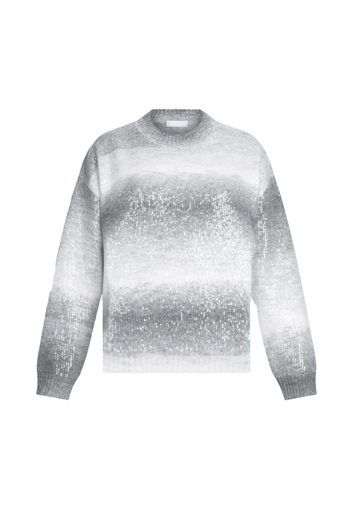 Design: Geribd ceintuurtje; Materiaal: Knitwear; Halstype: Opstaande kraag; Motief: Kleurverloop; Details: Pailletten; Extra's: Applicaties; Pasvorm: Losse pasvorm; Armlengte: Lange mouw; Lengte: Normale lengte