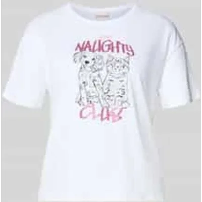 T-shirt van Liu Jo White voor dames;Puur katoen;Regular fit;Ronde hals;Motiefprint met strass-steentjes;Design met korte mouwen;Ruglengte bij maat S: 53 cm