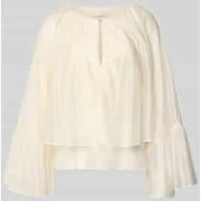 dames blouse van Liu Jo White;Lyocell-mix;relaxed fit;met ruches;ronde hals;met lange mouwen pasvorm;druppelvormige hals;Plooiingen;ruglengte bij maat 36: 51 cm;Mouwlengte bij maat 36: 53 cm