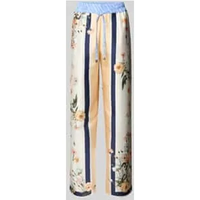 Dames stoffen broek van Liu Jo White;Satijn;Brede pasvorm;All-over bloemenprint;Elastische band met tunnelkoord;Bandwijdte bij maat 36: 41 cm;Binnenbeenlengte bij maat 36: 80 cm