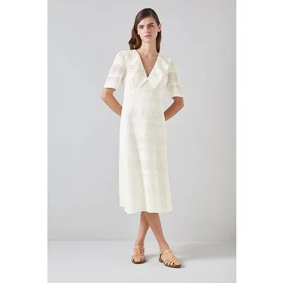 LK Bennett Ella Broderie Midi Dress White Prijzen