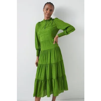 LK Bennett Flora Chevron Midi Dress Bright Green
