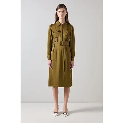 LK Bennett Newton Utility Shirt Dress Olive