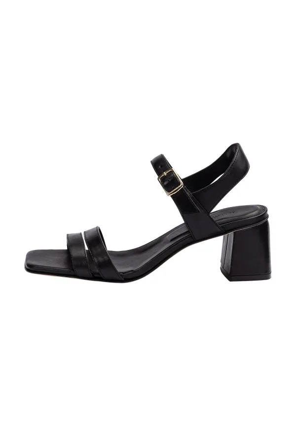 Type hak: Blokhak; Materiaal: Leer; Motief: Effen; Schoenneus: Open toe; Hakhoogte: Middelhoge hak (3-7 cm)