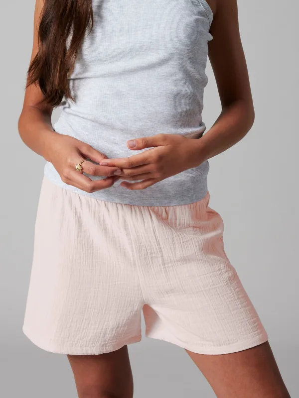 Voor zomerse dagen en ontspannen momenten is deze lichtroze korte broek voor meisjes een fijne basic in de kledingkast. De short heeft een zachte textuur en een effen kleur, waardoor hij makkelijk combineert met T-shirts, tops en sweaters. Gemaakt van 100% katoen voelt de stof luchtig en comfortabel aan op de huid, ideaal voor schooldagen, speelafspraken en vakantie.Comfortabele short met zachte textuur Gemaakt van 100% katoen, voor een soepele en zachte touch Lichtroze kleur met subtiele textuur voor een rustige, moderne look Elastische tailleband met regular waist voor comfortabel draaggemak Effen ontwerp zonder zakken voor een rustige, strakke uitstraling Valt normaal volgens het maatadvies, geschikt voor schoolkind en tiener Wasvoorschrift: handwas, niet strijken en niet in de droogtrommel drogenElke dag draagbaarDeze casual short is gemaakt om vaak te dragen. De elastische tailleband maakt aan- en uittrekken eenvoudig, ook zelfstandig. De korte broek is prettig op warme dagen.LMTD voor moderne kidsLMTD richt zich op kinderen en tieners die graag eigentijdse kleding dragen met een relaxte uitstraling. De collecties sluiten aan op trends, maar blijven tegelijk draagbaar voor elke dag. Met deze korte broek kies je voor een doordachte basic waar veel combinaties mee mogelijk zijn.Een lichte, comfortabele short die moeiteloos meedraait in het dagelijkse ritme.