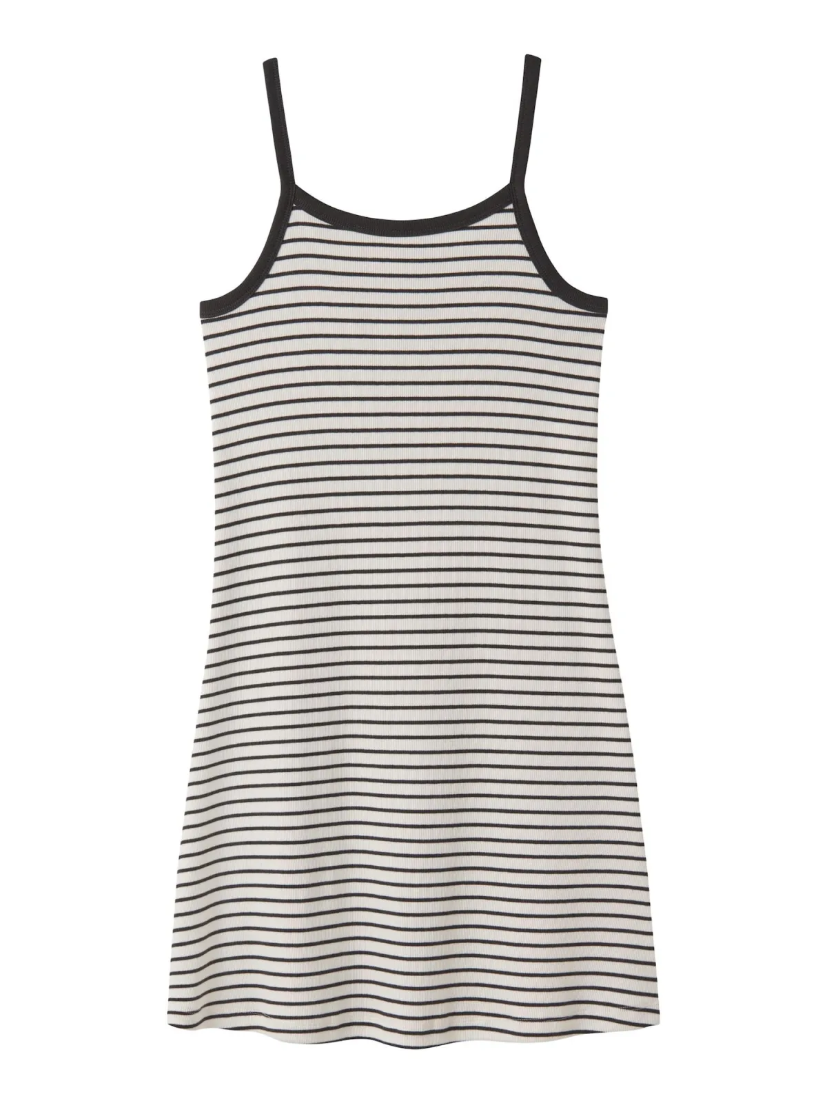Design: Gevoerde zoom/rand; Materiaal: Katoen; Halstype: Ronde hals; Motief: Gestreept; Soort bandjes: Spaghettibandjes; Extra's: All-over patroon; Lengte: Kort/mini; Pasvorm: Slanke pasvorm; Armlengte: Mouwloos