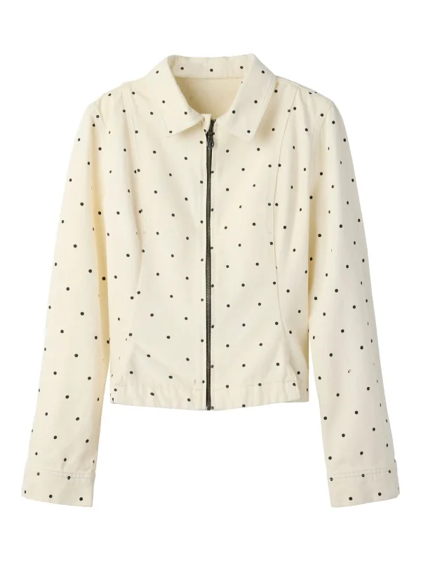 Design: Zijdelingse inkepingen, Turn-down kraag; Type sluiting: Ritssluiting; Voering: Gedeeltelijk gevoerd; Materiaal: Denim; Motief: Gestippeld; Extra's: All-over patroon; Pasvorm: Normale pasvorm